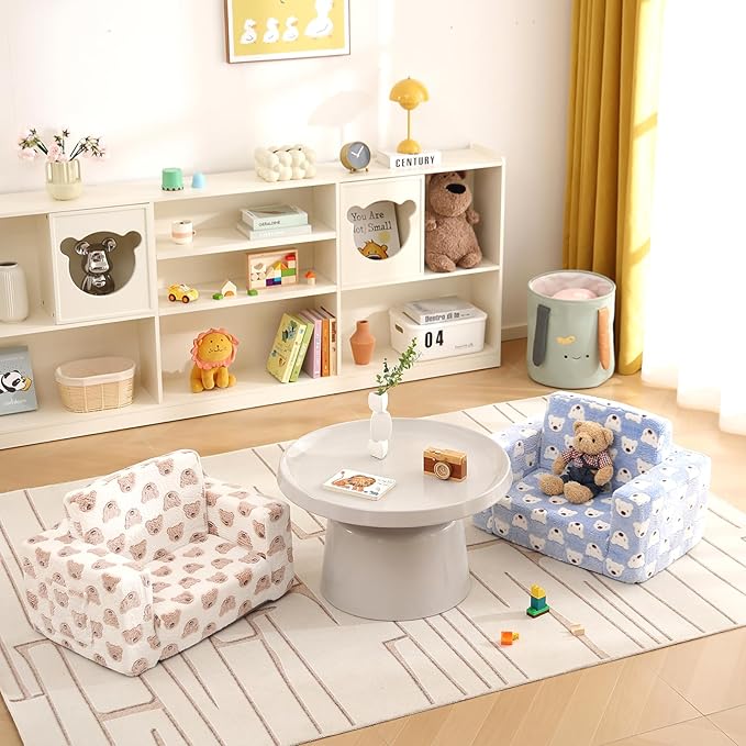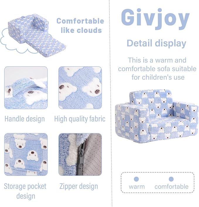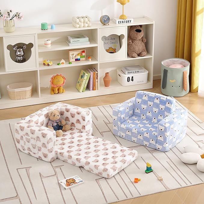 - 【Kids Sofa Requires No Assembly】The 2-in-1 toddler sofa couch is in vacuum packing. Open the Kids Couch packaging and you will get a soft plush Sofa for your kids. Please allow 4-5 days for the kids sofa couch to take on its original shape or use a clothing steamer to quickly restore its thickness and remove creases.