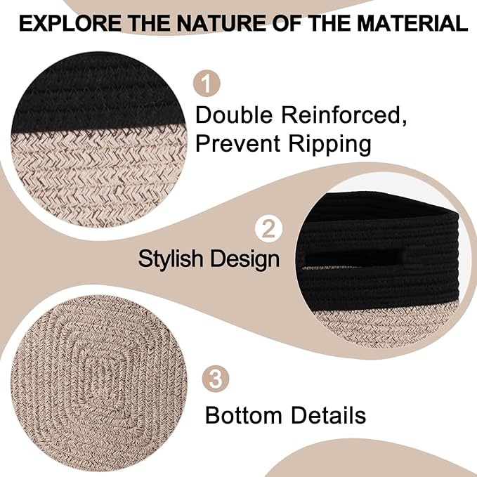 OIAHOMY Cube Storage Basket, 3-Pack Woven Cotton Rope Baskets for Storage, 11-Inch Cube Basket with Handles, Great for Shelves, Closets, Children's Toy Storage and Organization-Black & Brown