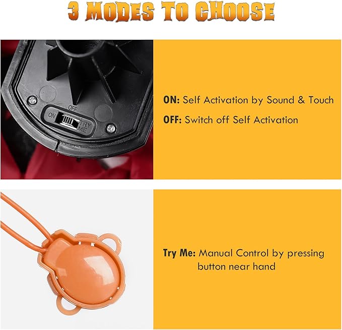 - 3 Modes to Choose - Comes with a battery compartment providing 3-mode control including OFF, Self-Activate Mode and Try Me Mode, you can press the button near the zombie's hand to activate it manually under Try Me Mode, or switch to ON to enable sound & touch activation mode