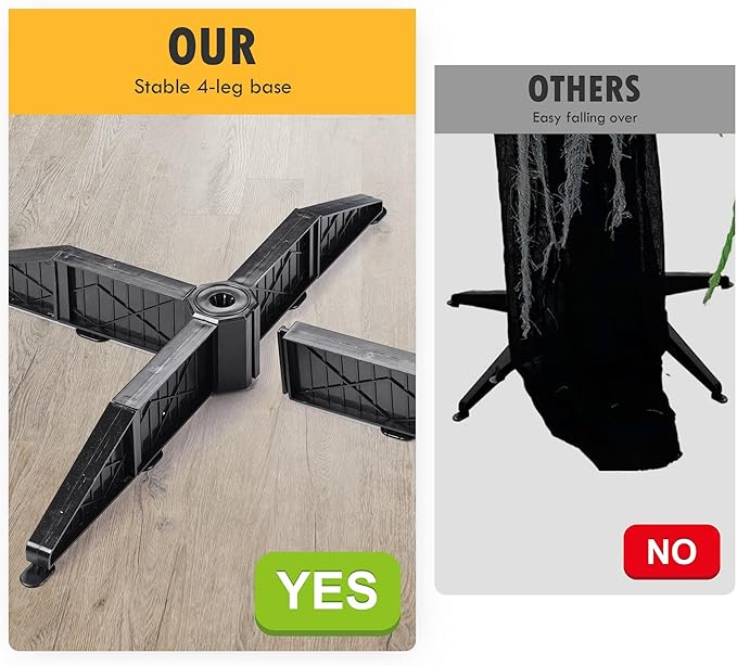 - Easy & Quick Setup - No tool is required for easy installation in minutes, just assemble the base, connect the poles, put the battery compartment through the pole, and extend the zombie decoration; Features adjustable pole height by fitting together different numbers of poles to suit your needs, and 4-leg base for better stability