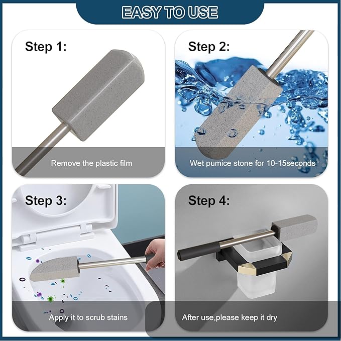 - Easy to Use:Wet the pumice stone for 10-15 seconds firstly,then test on small area,keeping the pumice cleaning stone and toilet surface wet throughout use,and then rub surface gently to remove stains