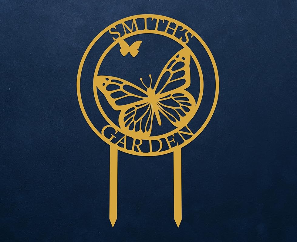 Custom Butterfly Metal Garden Sign with Stakes, Metal Yard Art, Personalized Butterfly Home Garden Decor, Garden Family Name Sign for Outdoor New Home Gift for Outside, Patio Decor, Housewarming Gift