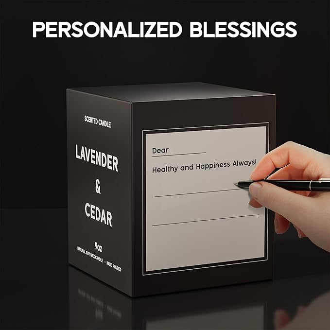 Lavender&Cedar Candle, 9oz Scented Candle for Men, Scented Candles for Home, Soy Candle Gifts for Men, Personalized Blessing Minimalist Men's Scented Candle
