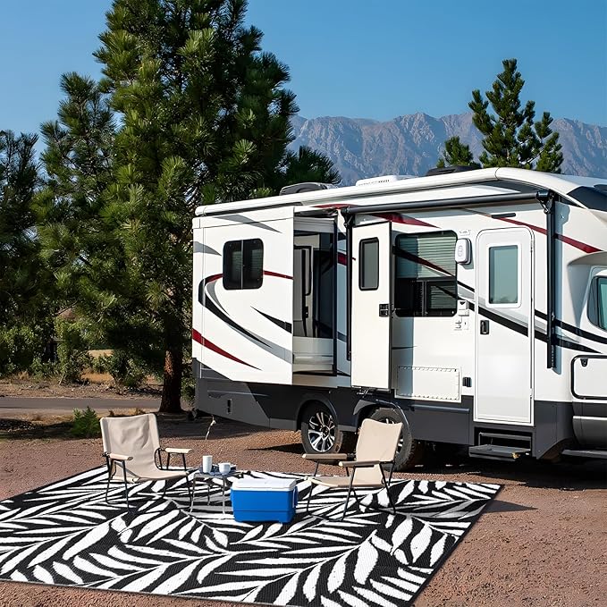 - Stylish & Functional: Our reversible camping rugs feature tropical leaf patterns on both sides, adding a touch of vibrant style to patios, RV's, porches, decks, backyards, and any outdoor space.