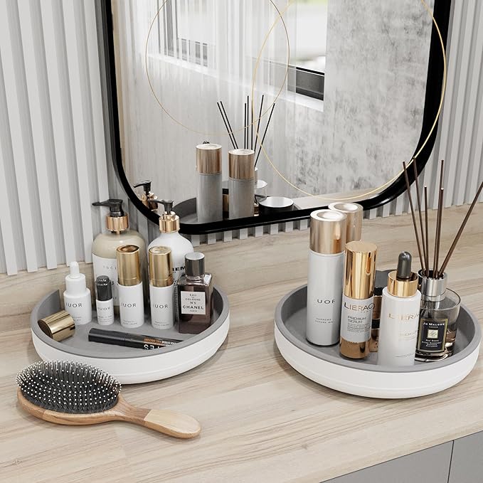 - Multifunctional Turntable Organizer - Perfect spinning lazy susan organizer for kitchen, pantry storage, dining room, bathroom countertop, table, under the sink, refrigerator, cabinet closet,etc. You can organize such as spice jars, oil bottles, drinks, toiletries, cosmetics, etc
