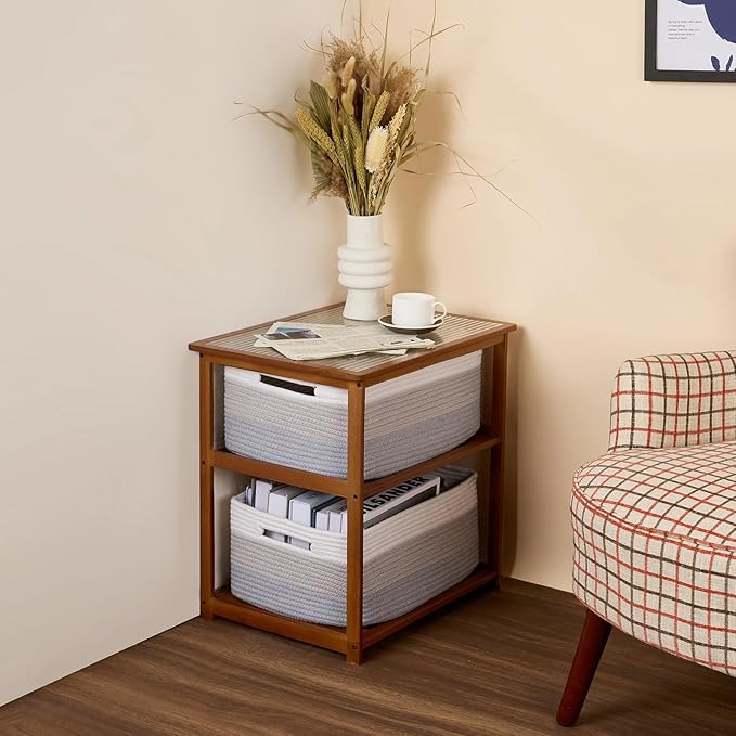 - [ Stylish Design ]: With a modern minimalist design, our woven rope baskets are a chic alternative to traditional rattan. They’re perfect for closets, changing table organizer, and cube shelves, adding warmth and texture to any room while tackling home clutter