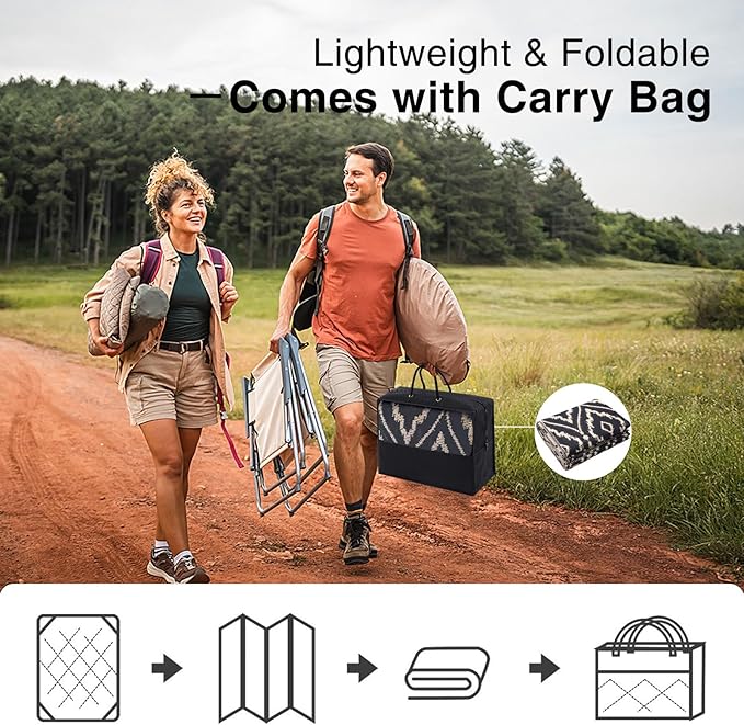 - Lightweight & Portable: These foldable, lightweight outdoor rugs are incredibly easy to transport. Take them to picnics, lawn parties, or camping trips without hassle, ensuring comfort and style wherever you go.