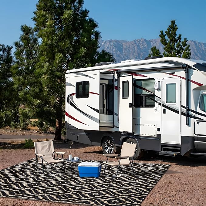 - Reversible & Versatile: Featuring a modern geometric pattern on both sides, this indoor outdoor rug is designed for versatility. Simply flip it over for an instant style refresh. Perfect for patios, porches, RV campsites, and more, this camping rug adapts effortlessly to any setting.