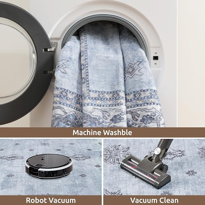 - Easy Care: To maintain washable rugs, regularly vacuum to remove dust and dirt. Carpet for bedroom is machine washable; simply use warm water below 40°C and a mild detergent or carpet cleaner if necessary. If the vintage rug is exposed to direct sunlight, rotate it periodically to promote even fading over time.