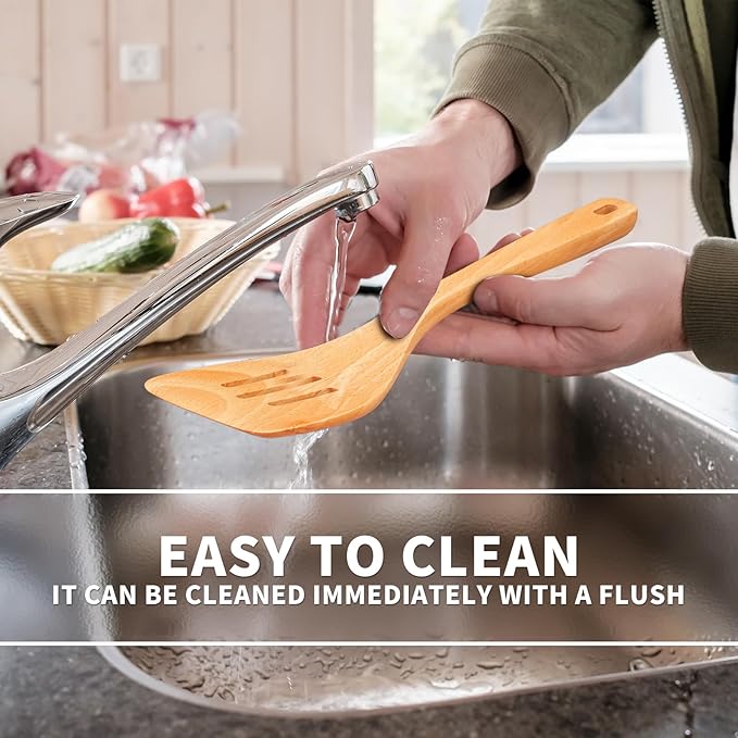 - NATURAL Beech WOOD: Crafted from solid teak wood, our utensil set is 100% handmade and eco-friendly. It's durable and crack-free, unlike silicone or bamboo alternatives. Note: Natural wood utensils may have slight color variations.