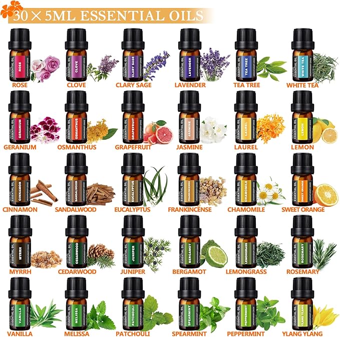 - 【Diffuser with Essential Oils Set】: The essential oil set includes our most popular wood grain essential oil diffuser (550ml upgraded version) and top 30 100% natural essential oils perfectly with ultrasonic oil diffuser to bring aromatic scent.