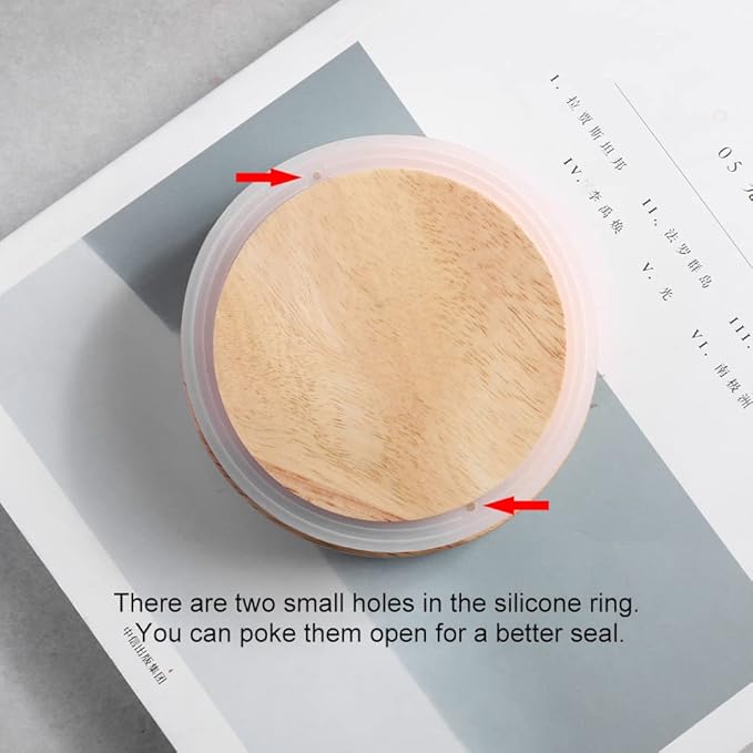 - Precautious for Use - The original wooden lid has a slight odor what doesn't affect the use. Airing several times will disappear. When sealing, rotate and press the lid at the same time. Lids are hand wash only. Canisters are microwave and dishwasher safe.