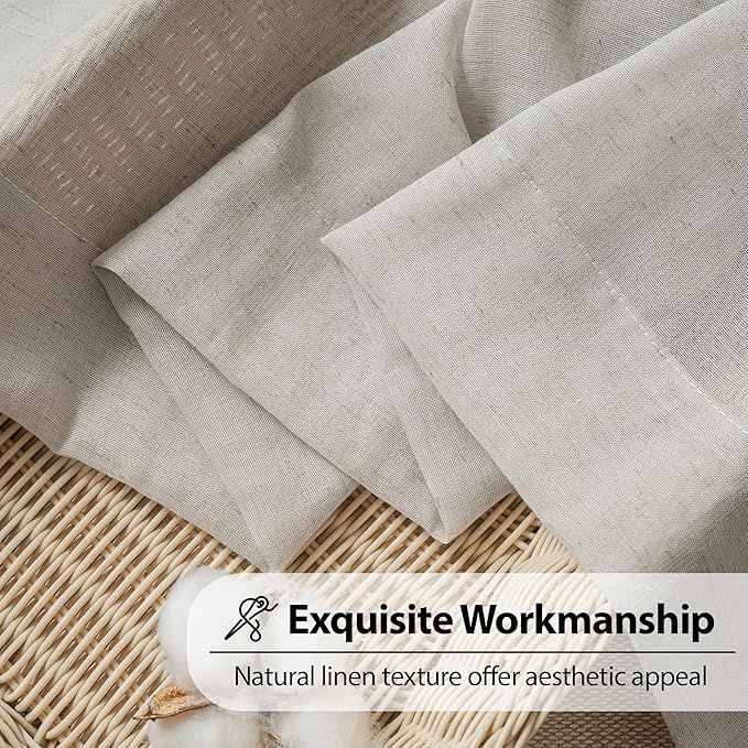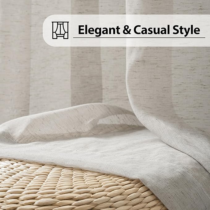 - Linen Blend Sheer Curtains: Add soft texture and a classic look to your home with FMFUNCTEX flax linen curtains. Package includes 2 panels 52 inch wide by 84 inches long each, 104 by 84 combined. With a soft, these drapes bring both casual warmth and a refined style to the room