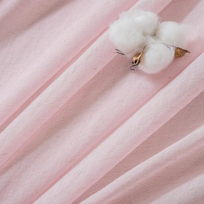 FMFUNCTEX Linen Sheer Curtains for Bedroom, Pink Curtains 96 inches Long for Living Room, Blush Pink Farmhouse French Flax Blend Window Draperies, Rod Pocket 2 Panels Set