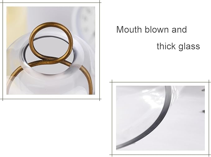 16" High Versatile Modern Metal Hurricane Lantern with Handmade Sturdy Glass Dome for Pillar Candle & Plants (Brass, 6.3"x16.5")