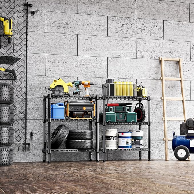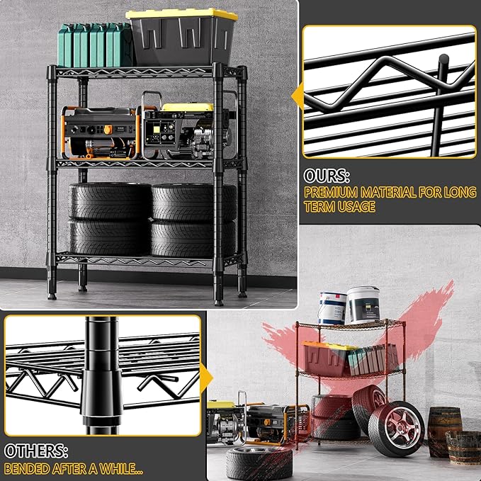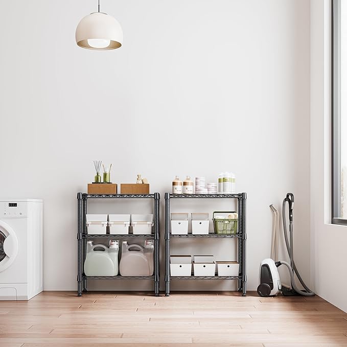 750 lbs 3 Tier Shelf Metal Storage Shelves Wire Rack Closet Organizers for Garage Kitchen Bathroom Laundry Black 11.8" D x 25.6" W x 31.5" H