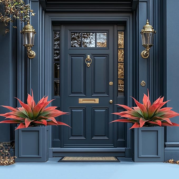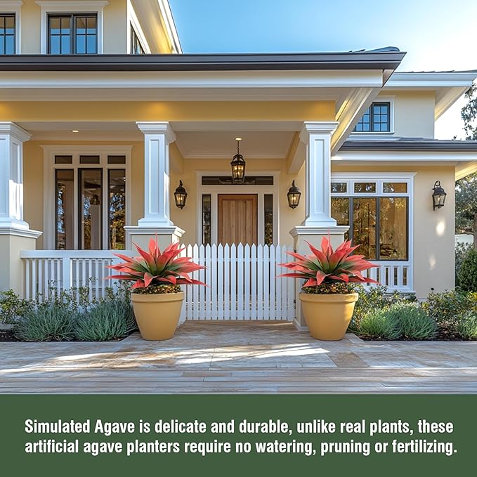 - 🌵About The Large Fake Plants Color: natural red, replica of the real agave color, delicate and durable, outdoor sun protection.Low Maintenance Unlike real plants, these artificial agave planters require no watering, pruning, or fertilizing. faux succulent outdoor plant enjoy the beauty of greenery without the hassle of maintenance.