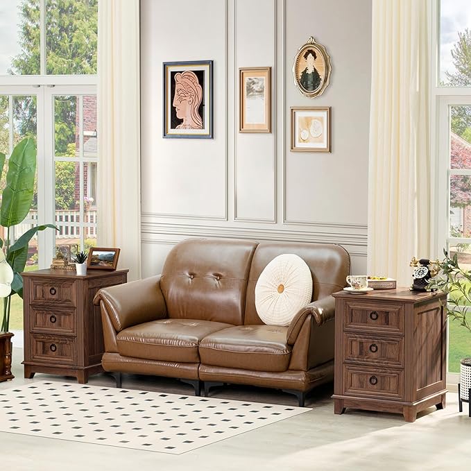 - Sturdy and Reliable Structure:The side table with drawers is constructed from durable wood panels, ensuring a heavy-duty and long-lasting design. The 3 drawers feature high-quality metal drawer slides, enabling smooth and quiet operation, with a soft-close mechanism for a perfect closure every time.