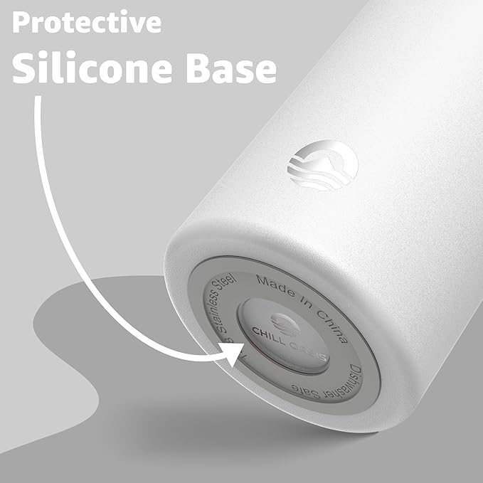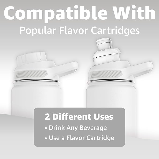Chill Oasis Water Bottle | Compatible With Popular Flavor Cartridges | BPA Free, Leak Proof, Double-Walled Vacuum Insulated Stainless Steel, and Dishwasher Safe | Cold for 24 Hours (White, 12oz)