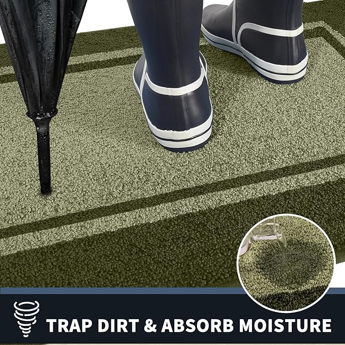 PURRUGS Dirt Trapping Door Mat 32" x 48", Non-Slip/Skid Machine Washable Entryway Rug, Shoes Scraper, Area Rug, Super Absorbent Welcome Mat for Muddy Wet Shoes and Paws, Budding Green & Sage Green