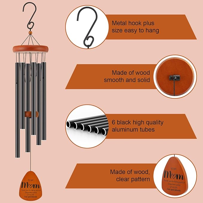 - Soothing Sounds for Relaxation: With its precise design and six thick-walled aluminum tubes, this wind chime gift produces soothing melodies, creating a serene atmosphere that promotes relaxation and tranquility. It's a perfect way to express your love and strengthen your bond with your mom.