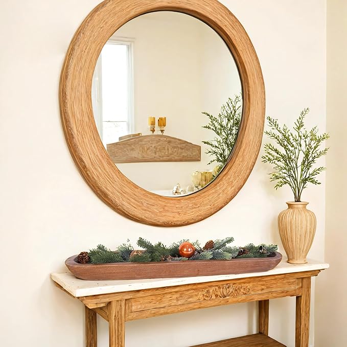 - 【Multipurpose】Wooden dough bowls for decor centerpiece on kitchen counter, entryway table and MORE! A long wood bowl is also good as a trinket tray for small objects such as keys, jewellery, and cosmetics. It can be placed anywhere in the home, such as the dining room, living room, bedroom, garden, etc.