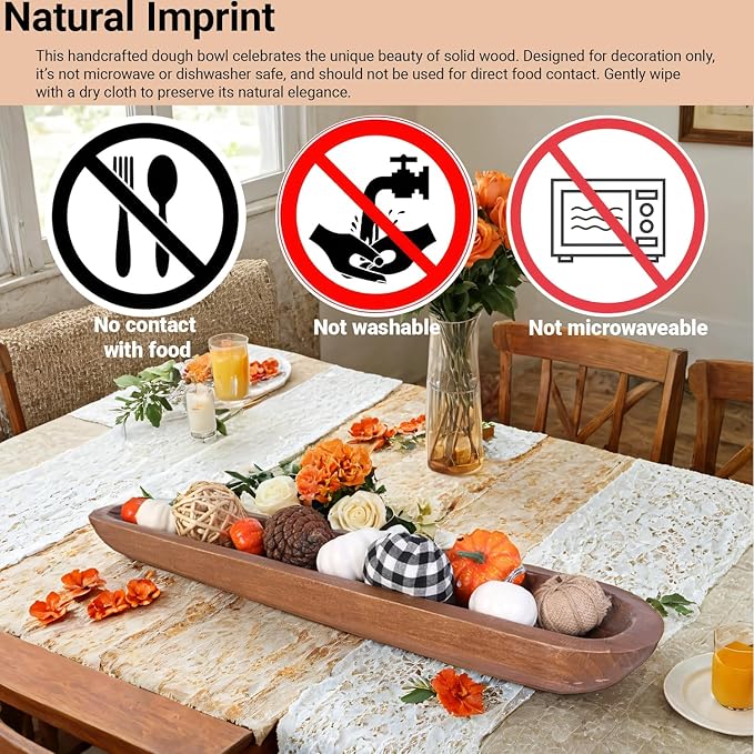 - 【SIZE】There are three sizes to choose from, approximately L: 40*6*2.7 Inch (L*W*H); M: 30*6*2.7 Inch (L*W*H); S: 22.7*6*2.7 Inch (L*W*H). Practical wooden dough bowls for decor and not for direct food contact. Each wooden dough bowl is unique, so no two bowls are the same.