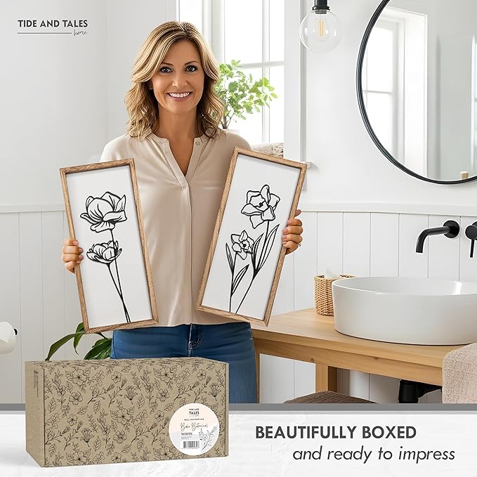 - Durable, High-Quality Wooden Frames – Made from premium wood, these boho aesthetic minimalist wall art are sturdy and built to last, ensuring long-term enjoyment without bending or warping, even in humid bathrooms.