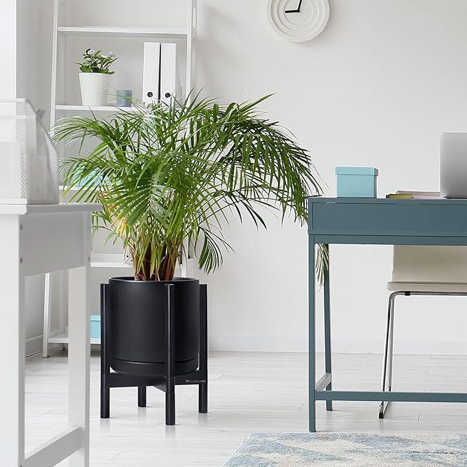 - A Complete Set: Mid-century ceramic planter, combined with a ebony wood stand that match perfectly together and looks great in anywhere.