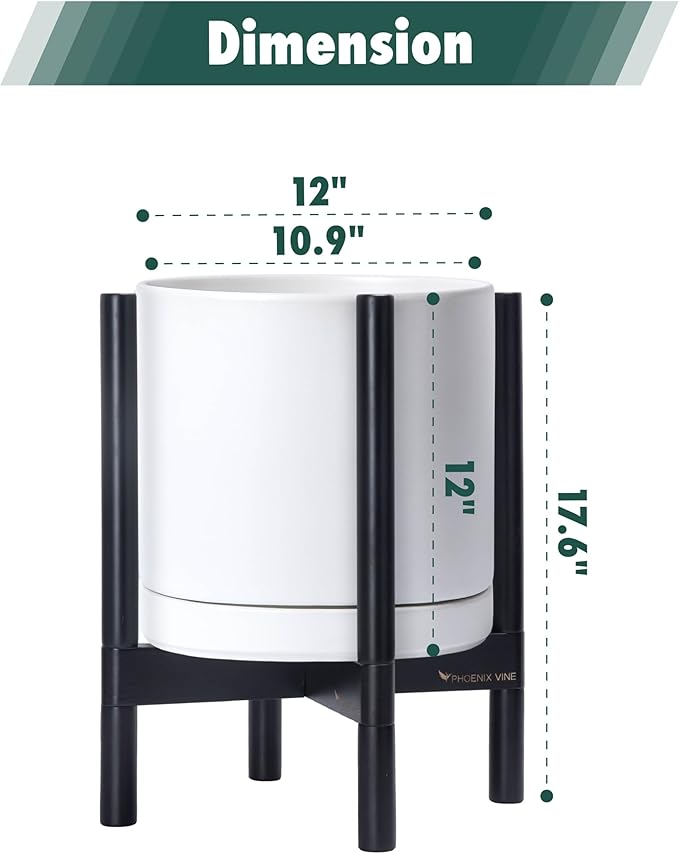 - 12 Inch Pot with Stand Set: Planter size: 11.8"Diameter x 11.8"H; pot with stand total height: 18.5 inch.