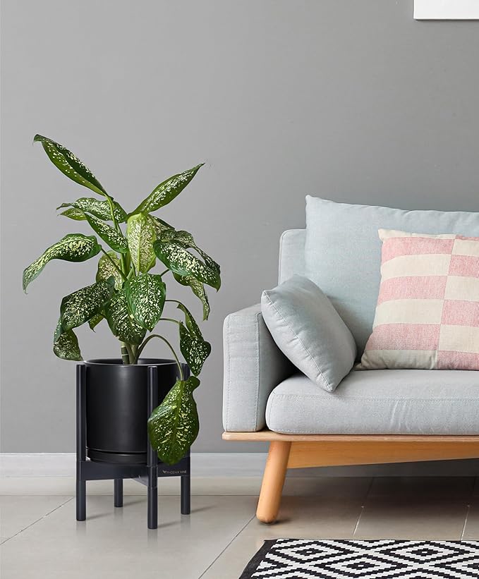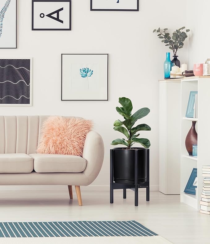 - A Complete Set: Mid-century ceramic planter, combined with a ebony wood stand that match perfectly together and looks great in anywhere.