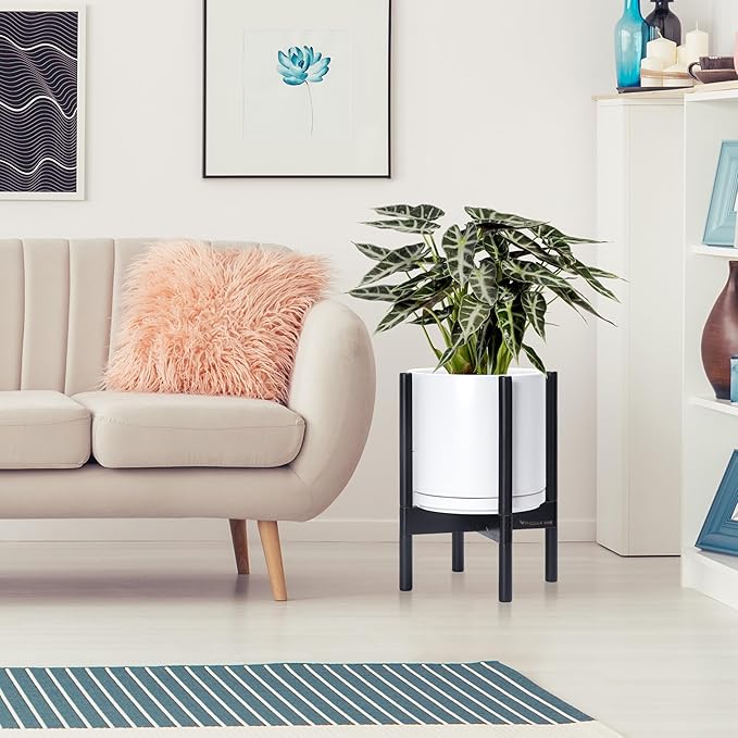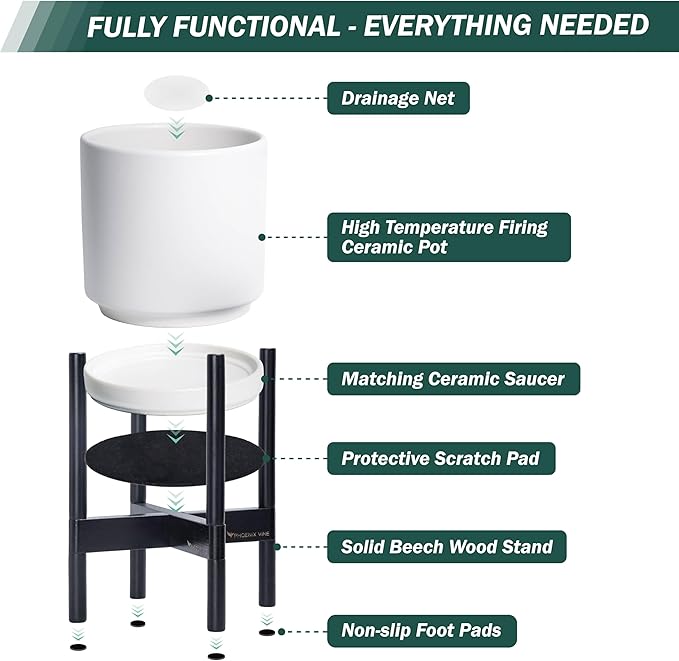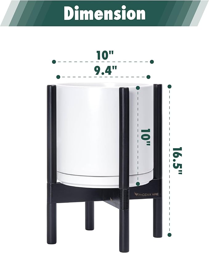 - A Complete Set: Mid-century ceramic planter, combined with a ebony wood stand that match perfectly together and looks great in anywhere.
