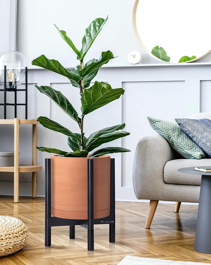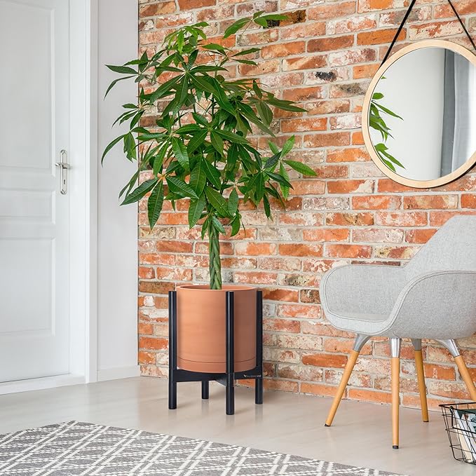 - A Complete Set: Mid-century terracotta planter, combined with a ebony wood stand that match perfectly together and looks great in anywhere.