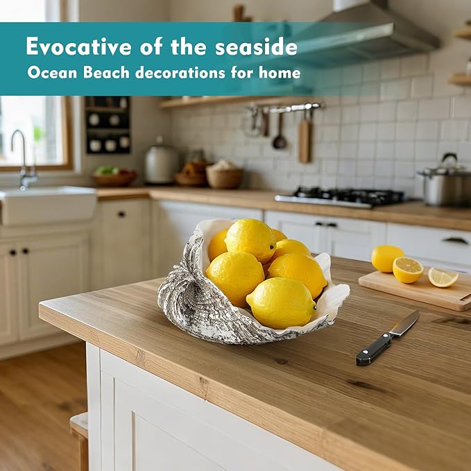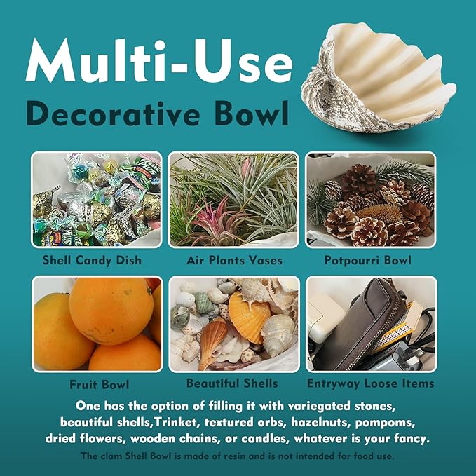 - Beach decorations for home:Resin decorative shell bowls is a beautiful translation of a shell from the thrashing Pacific into a small decorative sculpture.This sea inspired clam scallop shells will add nautical elegance to your home, without exploiting any bit from our oceans