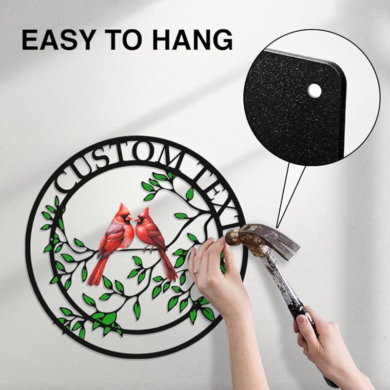 Personalized Name Garden Cardinal Metal Signs, Custom Family Name Outdoor Indoor Wall Decorations, Wall Art for Mom Sister Grandma Dad, Housewarming Gift Birthday Retirement
