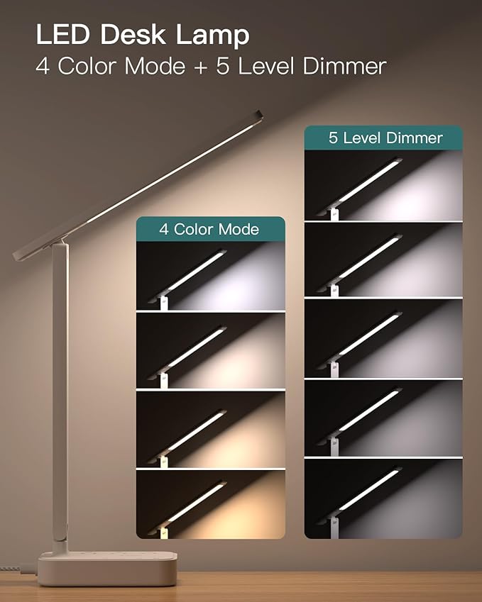 - 【 LED Desk Lamp 】 - Features 4 color temperatures and 5 adjustable brightness with 6500k illumination, enabling you to customize the light you want. This desk light can be easily controlled by the integrated touch buttons. It can be used as an ambience lamp, reading lamp, nail lamp, night light, study lamp, desk lamp for home office, bedroom, college dorm room, living room and gaming room