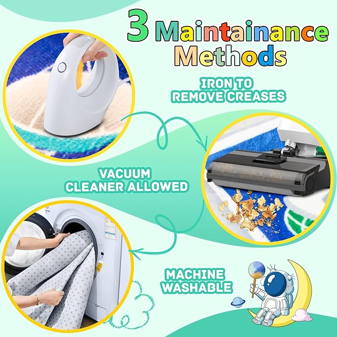 - [Unique Design]: The spaceship road rug for educational learning nursery. Unique 3D three-dimensional pattern design, colorful cartoon outer Space, Planet, Rocket. Your child could use all of their toys for hours of exploration on the Space Playmat Rugs.
