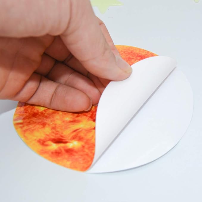 - Glowing stickers can create a warm atmosphere and help your child sleep peachfully. put a smile on the faces of the people you love as they gaze into the glow of the simple. We are glad to give much fun to you.We aim to satisfy every children's curiosity and exploration.Reassure light of the stars planet galaxy will help kids feel safe in the darkness.
