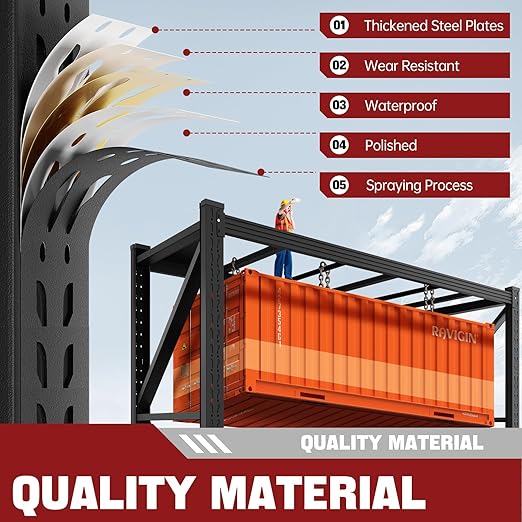 - 【HEAVY DUTY FOR REAL】Our super heavy-duty garage shelving featuring one-piece columns that are seamlessly constructed without any joints. This design eliminates weak points and ensures maximum stability, even under the heaviest loads. Each column is wider and thicker than standard models, providing a solid foundation that can handle up to 5000 lbs in total weight. Whether you’re storing heavy machinery, large containers, you can trust our garage shelving to keep your items safe and secure.