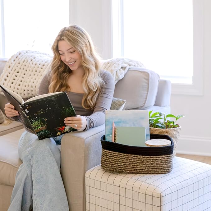 - Safe, Natural Cotton Organizer Bins: Crafted from the highest quality material in the market, our storage bins are oh-so-sturdy (and cute) and ready to take on little humans. They’re 100% safe, so you can rest easy if teething toddlers take a nibble. Reinforced Hidden Handles: Now you see ‘em, now you don’t! With completely hidden handles that blend seamlessly into the rope basket, you’ll be the Houdini of home organizing. They’re even double-stitched and reinforced for extra heavy loads!