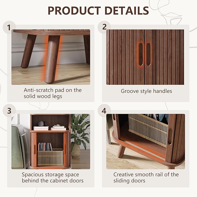 - 【Mid-century Modern Style】: This mid-century modern end table features a walnut grain, sleek curved round edges and fluted striped design, which makes its appearance looks more streamlined and softer, add a touch of retro elegant atmosphere to your rooms