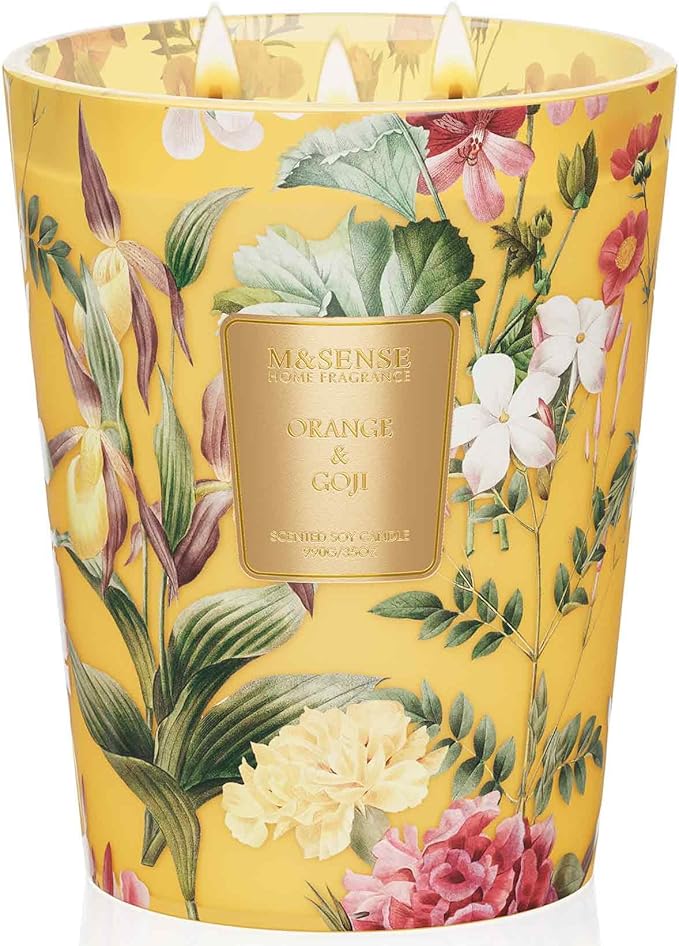 M&SENSE Extra Large Candle Orange Goji Scented, 3-Wick 35oz 150H Long Lasting, Natural Soy Wax Aromatherapy Candle for Stress Relief, Home Fragrance Housewarming Gifts Candle for Home Decor