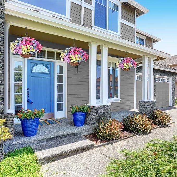 - 🟢 All-Occasion Decoration: These artificial outdoor hanging flowers basket are perfect for garden, porch, patio, balcony, yard, home, front door, and outside decoration. These artificial hanging flowers with a basket provide the beauty of real flowers without the need for maintenance.