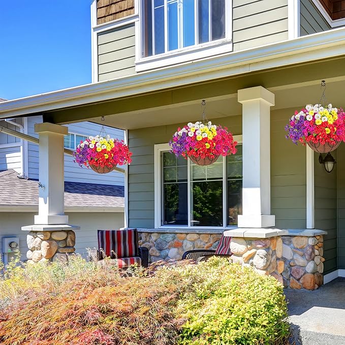 - 🟢 All-Occasion Decoration: These artificial outdoor hanging flowers basket are perfect for garden, porch, patio, balcony, yard, home, front door, and outside decoration. These artificial hanging flowers with a basket provide the beauty of real flowers without the need for maintenance.