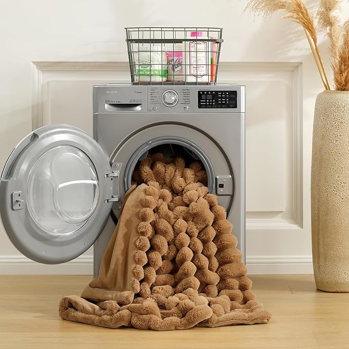 - Machine-washable and Tumble Dry: Cozy Bliss Faux Fur Blanket is easy to wash and dry. It’s safe to wash in a machine with cold water and a gentle cycle. To dry, you can use a mild circulation and no heat tumble dryer. It’s recommended to wash before the first use.