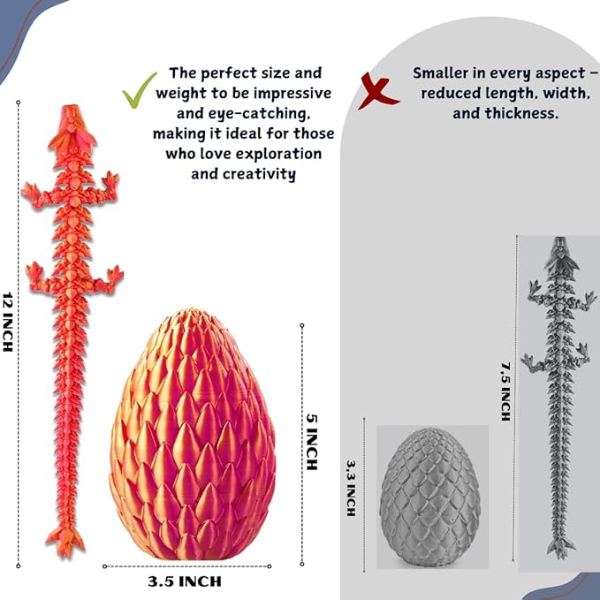 - 【PERFECT SIZE】: The 5.1-inch egg holds a majestic 12-inch dragon inside. Its size fits perfectly in your hand, ideal for display and interactive play. Dragon printed under authorized commercial license. Licenced Reseller of ZDeanzo's 3D Designs: phuc nguyen