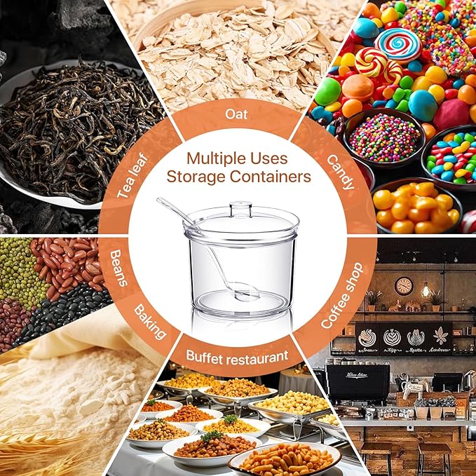 - Multiple Uses: Sugar container for coffee bar are idea for storing chili powder,sea salt,cumin,black pepper, salt,sugar in the kitchen. They are also suitable for storing tea, oats, candies, coffee beans at home, they are good for baking, self-service restaurants and coffee shops use