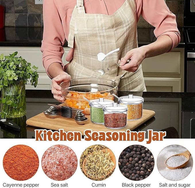 - Lid and Spoon: The sugar container comes with lid that prevents dust from falling in, the cylindrical design top of the sugar makes it easy for you to grab. The lid has a notch to fit the spoon and the spoon can be used to scoop out seasonings, which is very convenient for used