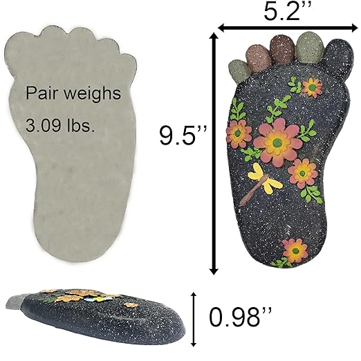 Stepping Stones Garden Decorative Stones for Patio, Deck, Garden or Sidewalk Home Decor Footprint Shaped Stepping Stones Set of 2 (Dark Grey)