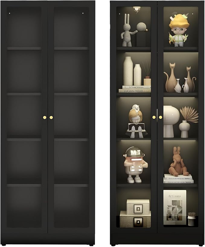 - Storage Cabinets for Multiple Purposes:A nice dust proof display cabinet to store a variety of books, collectibles, dishes and more. This steel storage cabinet can be used as a display cabinet for curios, books, artwork in your living room. It can also be used as a glass display cabinet, bookshelf, media cabinet, miscellaneous cabinet in office, bathroom, kitchen, etc. With local warehouses in USA, we are able to provide fast deliveries.